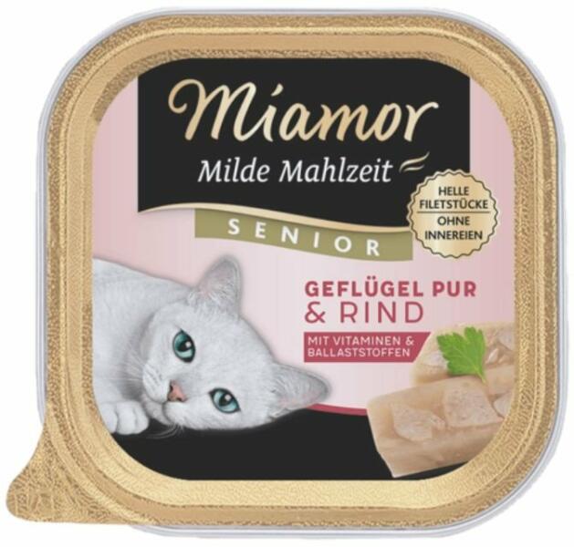 Gyártó: Miamor Modell: Senior poultry & beef 100 g Leírás: Nedves teljes értékű eledel idős macskáknak Világos színű baromfidarabok - máj és belsőségek nélkül. Könnyen emészthető eledelt kedvelő macskáknak, valamint túlsúlyos és mozgásszegény életmódot folytató macskáknak. A baromfi alapú ételek különösen könnyűek és könnyen emészthetőek. Kíméletese
