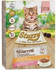 Stuzzy Cat pocket Kitten csirke/szalonna 12x85g, A nedves macskaeledel csirkével vagy sonkával kifejezetten gőzben készül. Az olasz Stuzzy zsebek még a legédesebb macskának is ízleni fognak. A tasak összetétele kifejezetten a kiscicák és fiatal macskák táplálkozási igényeinek kielégítésére alkalmas. A Sfilaccetti felirattal ellátott kapszulák kizárólag lassan főzött ter
