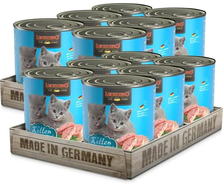 Leonardo Kitten baromfiban gazdag Mivel a házimacska vadon élő fajtársaihoz hasonlóan húsevő, a LEONARDO konzerveledeleinek célja a színhús-minőség nyújtása. Az élet tökéletes indításához. Porhanyós baromfival és egészséges adag lazacolajjal.
