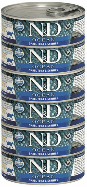 Az N&D Cat Ocean Tonhal Garnélával további jellemzői: Kiváló minőségű halakat (tonhal, tőkehal, hering) és garnélarákot tartalmaz. gazdag Omega-3 és Omega-6 zsírsavakban, melyek gyulladáscsökkentő hatásúak. kizárólag első osztályú összetevőket tartalmaz. GMO free, gluténmentes, gabonamentes, nem tartalmaz mesterséges tartósítószereket, cruelty free.
