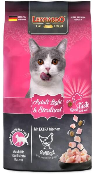 Jellemzők: - Extra friss baromfihússal - Csökkentett energia tartalom - magas fehérje tartalom - Teltség érzés megterhelés nélkül - Hosszúszőrű macskák számára is ajánlott Létfontosságú összetevők: L-KARNITIN Elősegíti a testzsír lebontását STAY-CLEAN Csökkenti a foglepedék lerakódását PH-CONTROL Optimalizálja a vizelet pH-értékét Etetési javaslat: Kifejlett, t