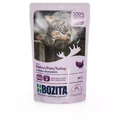 BOZITA darabok pulykamártásban 85g - Leírás A Bozita nedves eledelt a macskák minden fejlődési stádiumában lévő macskáknak szánjuk. A Bozita nedves eledel tasakos szószban svéd minőségű és ízletes eledel macskája számára, amely minden alapvető vitamint, aminosavat és ásványi anyagot tartalmaz. Pulyka ízű ételek. Összetétel Hús és állati eredetű termékek 50% (pu