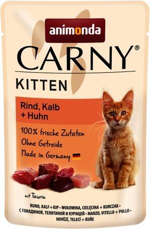 4.08kg Az Animonda Carny Kitten marhás, borjús és csirkés eledel alutasakban kölyök macskáknak. Friss húsokból, búza, cukor és szója hozzáadása nélkül készül, így biztosítva macskád számára a természetes étrendet. Tartalmazza a kölyök cicák számára nélkülözhetetlen tápanyagokat.