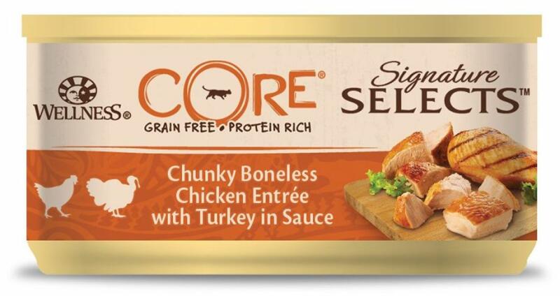 Wellness CORE gabonamentes teljes értékű konzerveledel csirke- és pulykahúsból ízletes szószban, felnőtt macskák számára. különleges összetétel hozzáadott vitaminokkal és ásványi anyagokkal az immunrendszer serkentésére az eledel nem tartalmaz gabonaféléket, búzát, kukoricát, szóját, tejtermékeket, tartósítószereket, mesterséges színezőanyagokat és ízesítősz
