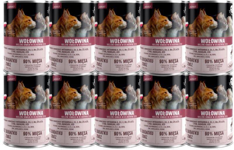 Marhahús, szeletelt darabok finom mártásban, 400g. Szeletelt marhahúsdarabok minden fajta macskának, finom mártásban tálalva, amely meghívást jelent egy ízletes étkezésre. Darabonként 90% hús és állati eredetű termék!NINCS ZÖRZSÉG ÉS CUKOR hozzáadásával, hozzáadott vitaminokkal és ásványi anyagokkal. A-vitaminnal: a megfelelő szemműködésért D3-vitaminnal: az erős