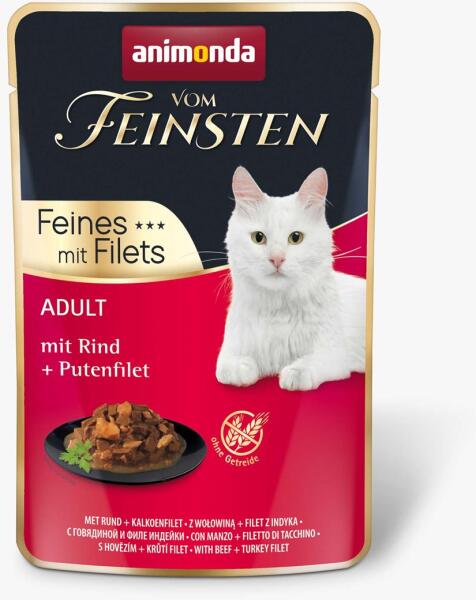 Felsőkategóriás, prémium minőségű nedveseledel, melyben a puha csirkehúsfilé sajttal van párosítva. Az ízletes húsfalatok, saját lében készülnek. Egyaránt ajánljuk fiatal, felnőtt és idős macskáknak. Az Animonda vom Feinsten tálalásra kész nedveseledel bármely macskáknak, amit a kiváló minőség és a finom íz jellemez. Az Animonda vom Feinsten prémium húsfilés te