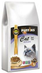 Puffins Cat Delicate Beef & Tuna 2kg, szuperprémium macskaeledel hústöltelékkel. Teljes értékű eledel minden fajta felnőtt macskának Friss marhahús, tonhal és bárányhús. složení: Hovězí 58 % (cerstvé hovezí 39 %, dehydrované hovezí 12 %, hovezí moucka 7 %), rýže, tuňák 14%, hrášek, zelenina (cerstvá, sušená mrkev, zelený špenát, petržel), jehněčí moučka