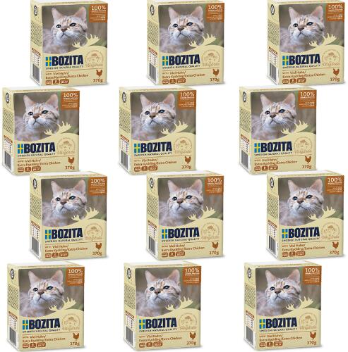 BOZITA Macska apróra vágott csirke zselében 370g - Termékleírás A BOZITA TETRA RECART - CSIRKEZselével egy kifejezetten macskák számára készült, zselében lévő ízletes friss húsdarab. A belsejében egész húsdarabok vannak zselében. A gyártáshoz felhasznált friss hús szigorú minőségellenőrzésnek van alávetve. Összetétel Csirke (92% minden darabból) Sertéshús K alci