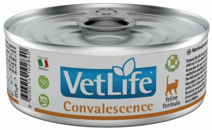 Vet Life Cat Convalescence további jellemzői: A magas energiatartalom és a hozzáadott L-karnitin megfelel a legyengült páciensek speciális táplálkozási igényeinek. A felhasznált összetevők minősége biztosítja a konzerv könnyű emészthetőségét , támogatja a jobb jelszívódást és hasznosulást. A bélrendszer egészségének helyreállítását a kiváló minőségű alapan