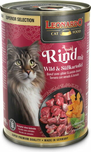 Nedvestáp macskáknak Marha, vad, belsőségek és édesburgonya Lazacolajjal Németországban előállított