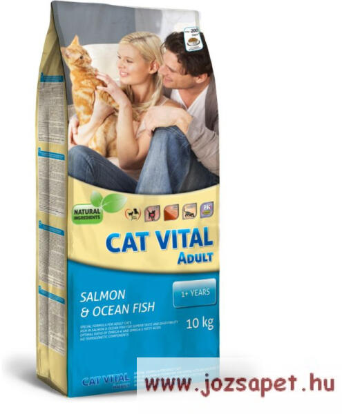 Cat Vital Salmon & Ocean Fish 10kg Egy teljes értékű táp átlagos aktivitású felnőtt macskák számára, mely a legjobb minőségű, az egészséges, kiegyensúlyozott étrendhez szükséges összetevőket tartalmazza: lazac, tonhal és rizs biztosítják az optimális fehérje- és kalóriamennyiséget és a kiváló emészthetőséget. Cat Vital Salmon & Ocean Fish 10kg Egy teljes