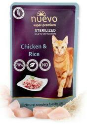 Nuevo cat pocket sterilizált baromfi rizzsel 85g, A Nuevo sterilizált baromfitáp rizzsel egy teljes értékű eledel minden fajta ivartalanított macskának, rizzsel dúsított baromfihússal. Magas hústartalom és természetes összetevők, mesterséges adalékanyagok, gabonafélék és glutén nélkül teszi ezt az eledelt igazán minőségi csemegévé, amelyet még a legválogatósabb macs