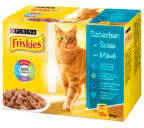 FRISKIES Szószban Lazaccal/Tonhallal/Szardíniával/Tőkeh allal nedves macskaeledel 12x85g Összetétel : Hús és állati származékok, Gabonafélék, Hal és halszármazékok (melyből lazac 4%), Ásványi anyagok, Különféle cukrok. Adalékanyagok :Táp értékkel rendelkező adalékanyagok:NE/kg: Vit A: 570; Vit D3: 87; mg/kg: Taurin: 358; Vas(II)-szulfát monohidrát: (Fe: 6,5); Vízment