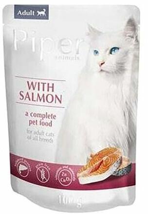 PIPER CAT zseb macskáknak, lazaccal 100g, teljes értékű macskaeledel összetétel: hús és állati termékek 55 %, húsleves, hal és hal melléktermékek (10 % lazac), ásványi anyagok analitikai összetétel: fehérje 11 %, olajok és zsírok 6 %, hamu 1,5 %, rost 0,5 %, nedvesség 80 %, kalcium 0,3 %, foszfor 0,25 % súly: 100 g