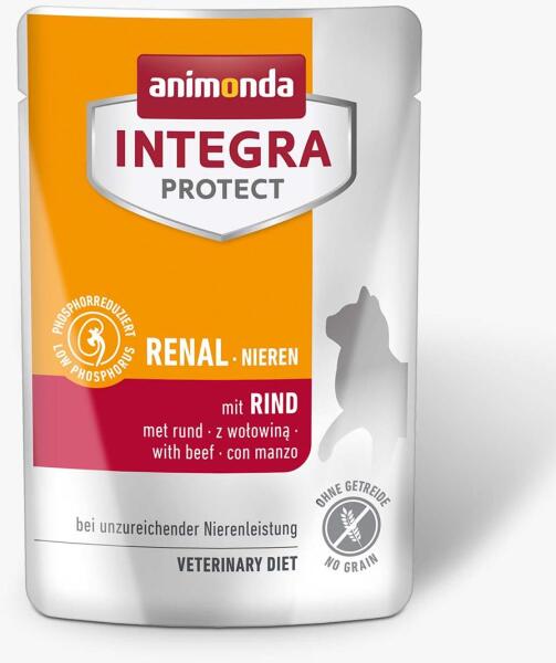 Az Animonda Integra Protect egy speciálisan összeállított marhahústáp krónikus veseelégtelenségben szenvedő macskák számára. támogatja a veseműködést krónikus veseelégtelenségben szenvedő macskáknál finomra darált marhahús alacsony foszfor- és fehérjetartalommal - a csökkentett foszforszint késlelteti a veseműködés romlását is, ami hosszú távon javítja a macska