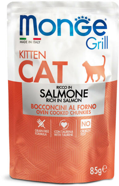 Zselés darabok, amelyekre a szilárd állag és a halakra jellemző kellemes aroma jellemző. A norvég lazac, mint fő összetevő, gazdag omega-6 és omega-3 zsírsavakban, és támogatja a bőr és a szőrzet jólétét. A dokozahexaénsav (DHA), az omega-3 zsírsav, nélkülözhetetlen tápanyag a cicák neurológiai és vizuális rendszerének fejlődésében. A receptet gabonafélék haszn