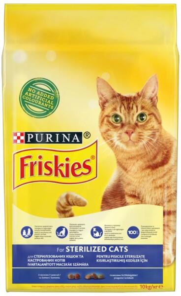 FRISKIES STERILCAT Ivartalanított macskák számára. Kiegyensúlyozott fehérje- és zsírtartalma segít macskája ideális testsúlyának megőrzésében. Kiegyensúlyozott ásványi anyag- és vitamintartalma segít az egészséges húgyutak fenntartásában és támogatja macskája természetes védekezőképességét. Macskája egyedülálló személyisége különleges hangulattal tölti m