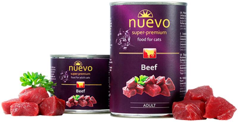 Nuevo cat adult Beef cons. 200g, A Nuevo macskakonzerv felnőtt marhahús a legmagasabb minőségű húst tartalmazza, amely magas biológiai értékű fehérjét biztosít macskájának. Pozitívan serkenti az egészséges bőr és szőrzet kialakulását, valamint elősegíti az immunitást és a mobilitást. Ezért mondhatjuk, hogy ez az egyedülállóan finom kukoricahús a kiegyensúlyozott,