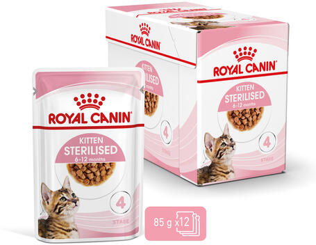 4.08kg A Royal Canin Kitten Sterilised Gravy egy kifejezetten ivartalanított kölyökmacskák számára készült nedvestáp 6-12 hónapos kor között. Ez az egyedi étrend optimális méretű, állagú és ízű falatokat kínál szószban. Mérsékelt zsírtartalommal rendelkezik a súlyfelvétel kockázatának csökkentésére, míg a fehérje, kalcium és foszfor optimális szintjét tartalm