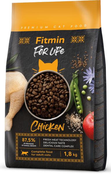 A Fitmin For Life kiegyensúlyozott eledel felnőtt macskák számára csirkéből és rizsből, 88 % állati eredetű fehérjetartalommal. a szárított csirkehús kiváló ízű és igen jól emészthető – ásványi anyagokban és esszenciális aminosavakban gazdag, amik elősegítik a test megfelelő működését fogápolás az egészséges fogakért és a szájüreg antibakteriális védel