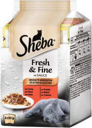 Sheba Fresh & Fine Húsos (csirke, marha, kacsa) válogatás szószban– Teljes értékű felnőtt macskaeledel praktikus frissentartó tasakban, rendkívüli és ízletes receptúrák alapján, különösen omlós és valódi filédarabokkal különleges szószokban. Járjon ínyenc macskája kedvében - nap mint nap valami egészen különlegessel! A Sheba Fresh & Fine Húsos válogatá