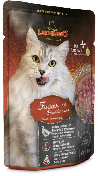 A LEONARDO® FINEST SELECTION alutasakos macskaeledel ideális az érzékeny gyomrú és válogatós macskáknak. Szaftos húsok, finom hozzávalókkal kombinálva, melyek a Szuper Prémium nedves-eledeleknél már jól beváltak. Kevert etetésre kifejezetten alkalmas és ajánlott is a LEONARDO® Szuper Prémium szárazeledelekkel. Egészséges lazacolajat tartalmaz (Omega 3 zsírsavakban gazdag