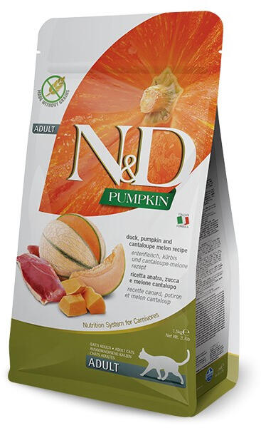 Teljesértékű eledel felnőtt macskáknak kacsahússal, sütőtökkel és sárgadinnyével. Gabona- és gluténmentes szuperprémium macskatáp. ÖSSZETEVŐK: Friss, csontozott kacsa (30%), dehidratált kacsa (28%), borsókeményítő, csirkezsír, szárított sütőtök (5%), szárított egész tojás, friss hering, dehidratált hering, hidrolizált halhús, halolaj (heringből), szárított s