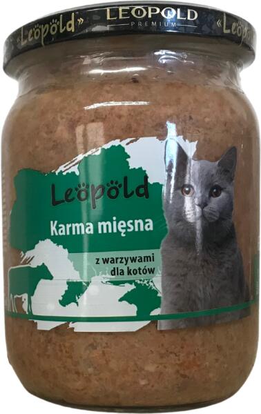 Leopold üveges élelmiszer 59% húsÖsszetétel:marhahús , marhahús belsőségek (máj, tüdő, légcső, bendő), legalább 59% hús és húskészítmények, sárgarépa, rizs, nyomelemek, vitaminok és ásványi anyagok. . Nem tartalmaz szóját, tartósítószereket, csalogatóanyagokat, aromákat, színezékeket, ízfokozókat és sót. Természetes húsból készült Sterilizált állatok