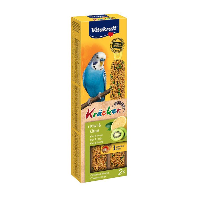 A Vitakraft rúd hosszú ideig biztosítja az állat foglalkoztatását, mivel a ropogós madár rúdról az ennivalót saját magának kell leválasztani. Így a madarakat arra készteti, hogy megdolgozzon a táplálékért, mint a természetben. A magkeveréket cukormentes recept alapján állítják össze, kifejezetten tollváltó hullámos papagájok részére. A háromszoros sütés garantá
