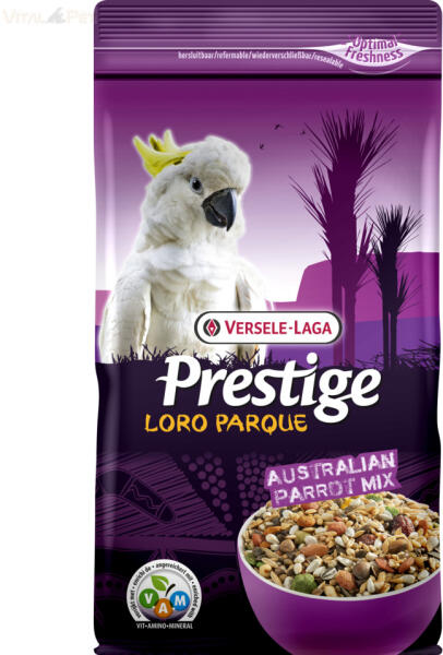 A Prestige Premium Australian Parrot magkeverék és speciális szemcsék keveréke minden olyan összetevővel, ami jó kondícióban tartja a kakadu-féléket. Alacsony zsírtartalmú, és különféle olyan szemcséket is tartalmaz, melyek csemegének számítanak a a papagájok számára, pl. puffaszott gabonaszemek, tökmag, csipkebogyó, szárított bors-félék és fenyőmag. Gondosan válo