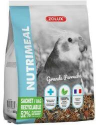 Takarmány közepes méretű papagájok számára NUTRIMEAL 800g Zolux, Állatorvosokkal együttműködve létrehozott teljes értékű eledel közepes méretű papagájok számára. az ívelt csőrű papagájok magevők, sok magot és némi gyümölcsöt és zöldséget esznek, és szükségük van a héjra. összetevők: gabonafélék (ebből köles 50%), gabona, héjas földimogyoró50% PROSA a