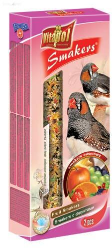 Vitapol Smakers rúd zebra pintyeknek 2db 60g gyümölcsös Kiváló eleség rúd formájában megfelelő vitamin és ásványi anyagokból készült kis kedvencünk számára. Csőrkoptató hatása van megőrzi kedvencünk vitalitását. A kép csak illusztráció