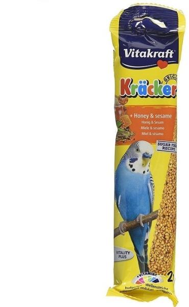 A Vitakraft dupla rúd méz és szezámmag háromszor sütött, cukormentes, vitaminokban gazdag kiegészítő állateledel hullámos papagájok számára. A madarat arra készteti, hogy megdolgozzon a táplálékáért - mint a természetben. Felhasználási útmutató: Legjobb, ha mindig van egy rúd a ketrecben. Összetétel: gabona, ásványi anyagok, magok (2,1% szezámmag), növényi eredet