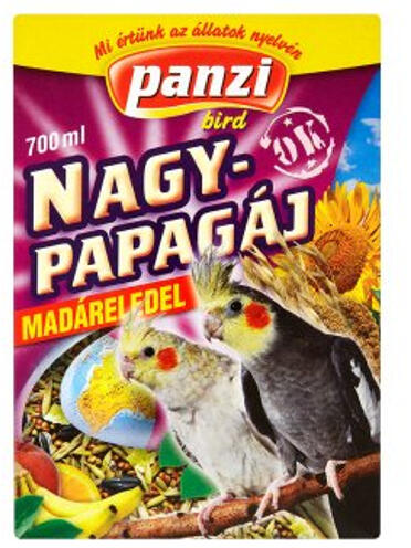 Teljes értékű eledel nagypapagájok ( pl: nimfa ) számára. speciálisan nagypapagájok számára összeállított keverék a Panzi nagypapagáj keverék biztosítja a hiánymentes, kiegyensúlyozott táplálást Összetevők: piros köles, fehér köles, zab, hántolt napraforgó, szárított alma, lapított kukorica,