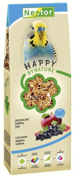 Gabonakeverékkel bevont Nestor eledel hullámos-és törpepapagájoknak jóddal és gyümölcsökkel. Élmény a magok kicsipegetésében. Természetes összetevőket és vitaminokat tartalmaz. Tartósítószert nem tartalmaz. A Nestor rúd EGÉSZSÉGES mert mindig frissen van csomagolva a műanyag akasztó nem okozhat sérülést a fa rúd segíti a fogak kopását. ERŐT AD mert olyan mint egy