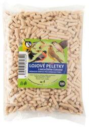 UGF faggyú pellet lisztkukacokkal 500g, A lisztkukacos faggyú pellet prémium minőségű eledel a kinti madarak számára. Kiváló minőségű marhafaggyút, gabonaféléket, földimogyorót és lisztférgeket tartalmaznak. Nagyon vonzóak a madarak számára, és számos vadon élő madarat vonzanak a kertbe. Külön etethetőek etetőkben vagy a földön. Különböző magkeverékek remek ki
