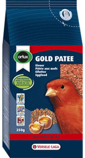 Versele-Laga Orlux Gold Patee Canaries Red - felhasználásra kész tojásos lágyeleség vörös színezékekkel kanáriknak, európai- és trópusi pintyeknek. A tojásos lágyeleség nélkülözhetetlen a tenyész szezonban, de egész évben is mint extra tápanyagforrás. 100%-ban természetes mézzel nedvesített. 75 mg/kg kantaxantint tartalmaz biztosítva a szép vörös színt a madaraknak