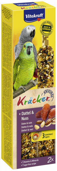 A ropogós rudak kifejezetten papagájok számára készültek, és kiváló minőségű természetes alapanyagokkal győznek meg. Esszenciális vitaminokkal dúsított és hozzáadott cukor nélkül készült. A finom diós gabonakeveréket három rétegben, természetes fán sütjük. Ez a madaraknak extra hosszú rágcsálási élvezetet nyújt. A keverékben lévő természetes fa rágcsálás