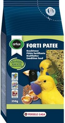 Versele-Laga Orlux Forti Patee eggfood - Lágyeleség kispapagájoknak, trópusi pintyeknek és kanáriknak. Sokszínű kondícionáló eleség extra energiával. 100%-os tiszta és természetes mézzel. A hozzáadott lysine és methionin optimális növekedést és tollfejlődést garantál. Kiszerelés: 250g