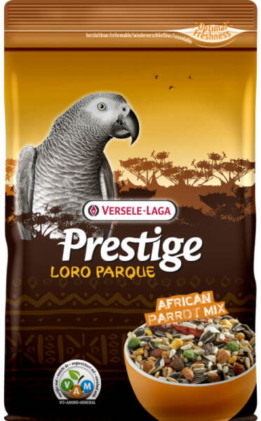 Versele-Laga Prestige Premium Parrots – Extrudált VAM pelletekkel dúsított magkeverék dió nélkül - óriáspapagájoknak. Dúsított magkeverékek: vitaminok, aminosavak & ásványianyagok = optimális kondíció Optimális bélfunkció és emésztés (Florasimul) Összetétel: csíkos napraforgómag 16,5%, sáfrány 12%, hántolatlan rizs 10%, hajdina 9%, tört zab 9%, maxi V. A. M. p