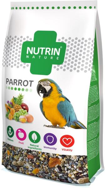 Kiváló minőségű és ízletes papagáj eledel hozzáadott színezék, ízfokozó és aroma nélkül. Magok ( min. 2% máriatövis), gyümölcs (min. 20%), növényi eredetű származékok (FOS - cikória-inulin 320 mg / kg, Yucca schidigera 160 mg / kg), növényi eredetű fehérje-kivonatok, élesztő, ásványi anyagok, olajok és zsírok, algák, tojás és tojás származékok. Analitikai