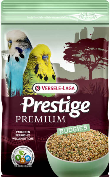 Versele-Laga Prestige Premium Budgies – Prémium minőségű mageleség hullámos papagájoknak és más, hasonló kisméretű papagájfajoknak. Dúsított magkeverékek: vitaminok, aminosavak & ásványianyagok = optimális kondíció Optimális bélfunkció és emésztés (Florasimul) Összetétel: fénymag 37%, sárga köles 19%, fehér köles 13%, V. A. M. pellet 8%, japán köles 7%, h