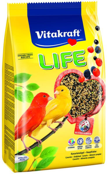 Vitakraft Life Power Kanári 800g A Life prémium eleség, változatos és ízletes összetevőkkel exotikus madarak részére készült, kölessel, egészséges zöldségekkel és erdei gyümölcsökkel. Vitamin tartalma segít megelőzni a hiánybetegségeket. A béta-glükánok erősítik a madár immunrendszerét. Ásványi anyag tartalma, a jód és más nyomelemek támogatják az anyagcseré