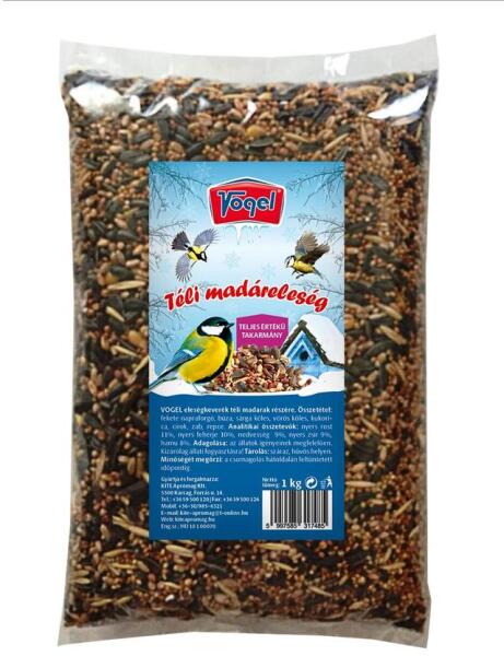 Teljes értékű takarmány Téli madarak etetésére. Változatos összetételű madáreleség, mely kiválóan alkalmas téli madaraink etetésére, a nélkülözhetetlen tápanyagok pótlására. A téli hideg beköszöntével a szabadon élő, hazánkban telelő madarak egyre nehezebben jutnak táplálékhoz. Sokat segíthetünk rajtuk, ha a kritikus hónapokban rendszeresen eleséget helyezü