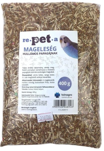 Kiegészítést nem igénylő eledel. Összetétel: gabonafélék ( köles 90,1% ), vetőmagok ( 3,5% ), ásványi anyagok, zöldségek ( répa, szárított 1% ), válogatott eukaliptusz levelek 0,4%, olajok és zsírok, növényi eredetű származékok, méz 0,02%, élesztő ( B-glukán ). A menü kedvelt eredeti márka a hullámos papagáj faj megfalalő táplálásához. Kiegyensújozott teljes