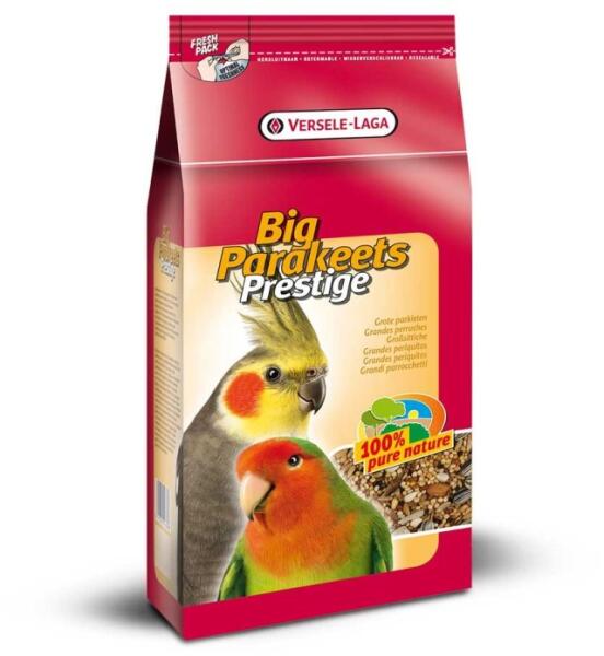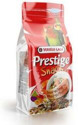 VL Prestige Snack papagáj 125g, Összetevők: gabonafélék, magvak, gyümölcsök (14%), pékáruk, tojás és tojásszármazékok (6%), zöldségek, diófélék, cukrok, növényi fehérje kivonatok, olajok és zsírok, méz, ásványi anyagok, FOS, MOS Összetevők / kg Táplálékkiegészítők: A-vitamin 3900 NE, D3-vitamin 200 NE, E-vitamin 31 mg, E1 (vas) 6 mg, E2 (jód) 0,25 mg, E4 (réz)