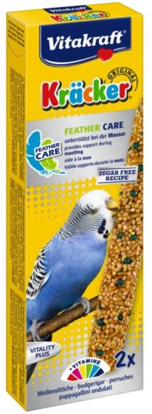 A Vitakraft Kracker dupla rúd tollváltó hullámos papagájoknak egy háromszor sütött kiegészítő eleség, esszenciális amiósavakat és ásványi anyagokat tartalmaz az optimális tollváltásért, rágófával és akasztóval. Az állatot arra készteti, hogy megdolgozzon a táplálékáért - mint a természetben. Felhasználási útmutató: Legjobb, ha mindig van egy rúd a ketrecben.