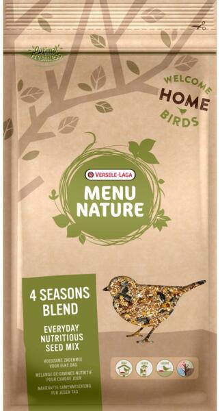 Versele Laga Menu Nature magkeverék minden évszakra. Összetev ők : Törött kukorica, búza, köles, napraforgómag, cirok, kanári vetőmag, repce vetőmag, mogyoró, feketemag, lenmag, panis Analitikai összetevők: Fehérje 10%, zsírtartalom 8%, nyershamu 2,5%, nyersrost 6%
