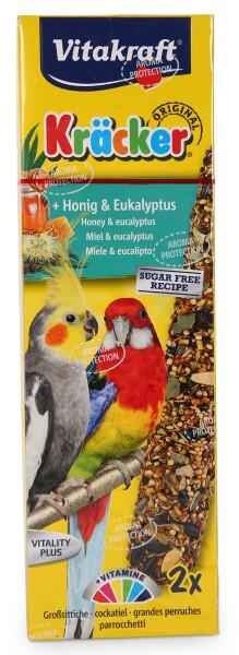 A Vitakraft Dupla rúd méz és eukaliptusz egy háromszor sütött, vitaminokban és ásványi anyagokban gazdag kiegészítő állateledel, koptatófával és akasztóval nagy papagájoknak. A madarat arra készteti, hogy megdolgozzon a táplálékáért - mint a természetben. Felhasználási útmutató: Legjobb, ha mindig van egy rúd a ketrecben. Összetétel: gabona, magvak, növényi szárm