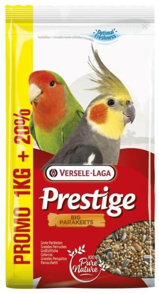 A BIG PARAKEETS egy optimálisan kiegyensúlyozott keverék közepes és nagy papagájok, például nimfák és szerelmespárducok számára. Összetétel: sárga köles 32,5%, fehér köles 15%, héjas zab 13%, búza 6,5%, csíkos napraforgó 6,5%, kanárimag 6%, sáfrány 5,5%, vörös köles 4%, repce 4% , lenmag 3%, fekete köles 1%. Adagolás: A madarak napi táplálékszükséglete életkor